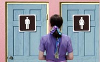 each other, connected by a pair of Fed-Exed jeans that strangely fit them
